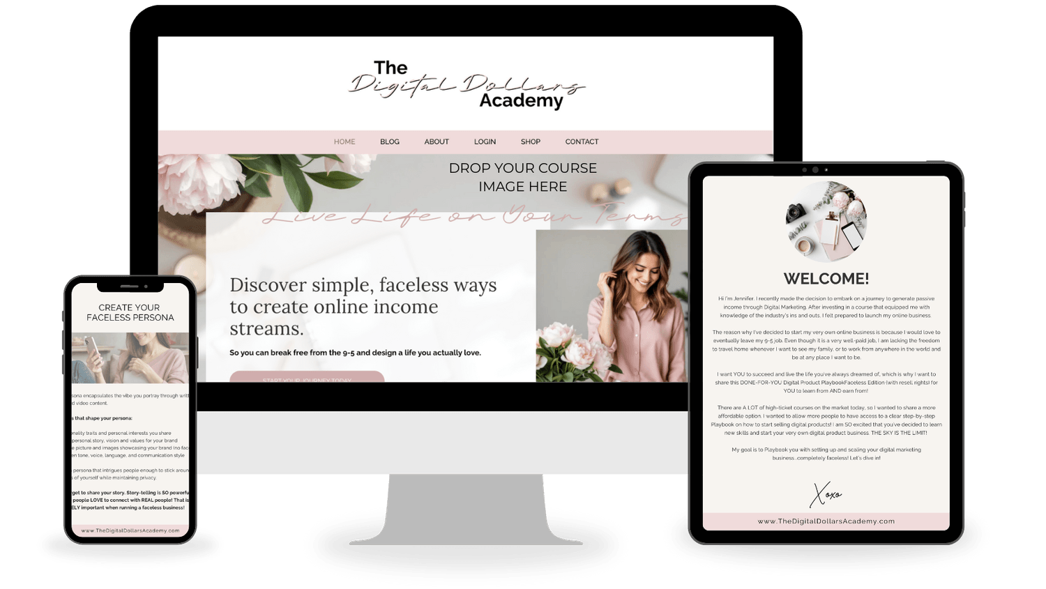 The Digital Dollars Academy is a step-by-step course that teaches you how to start and grow a faceless digital product business — even if you have no experience, no tech skills, and no idea where to start. You’ll learn how to set up your brand, customize ready-to-sell digital products, create a simple sales system, and grow your income streams without ever showing your face.